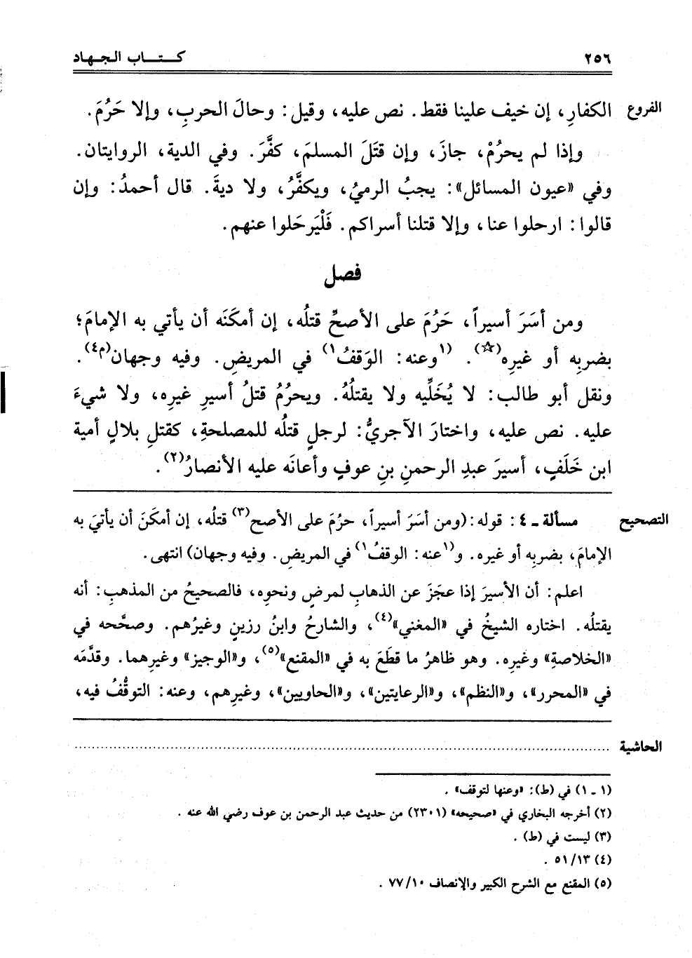 ـــــــــــــــــــــــــــــQمَسْأَلَةٌ 4" قَوْلُهُ: "وَمَنْ أَسَرَ أَسِيرًا حُرُمَ عَلَى الْأَصَحِّ3 قَتْلُهُ إنْ أَمْكَنَ أَنْ يَأْتِيَ بِهِ الإمام بضربه أو غيره, و1عنه الوقف1 في المريض, وفيه وجهان" انتهى.