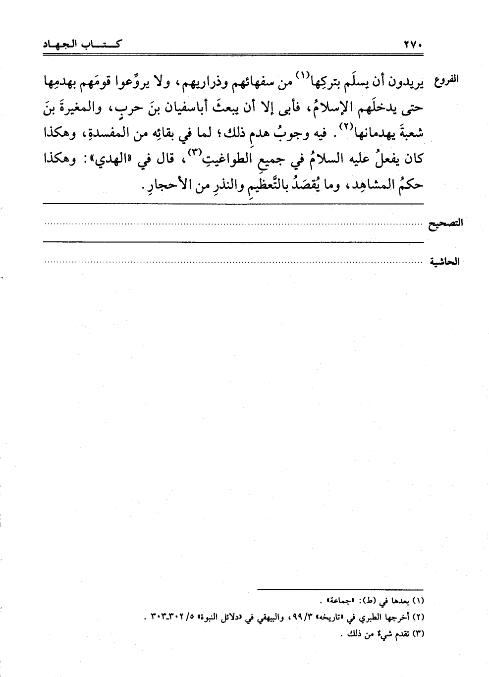 يُرِيدُونَ أَنْ يُسْلِمَ بِتَرْكِهَا1 جَمَاعَةٌ مِنْ سُفَهَائِهِمْ وَذَرَارِيّهِمْ وَلَا يُرَوِّعُوا قَوْمَهُمْ بِهَدْمِهَا حَتَّى يَدْخُلَهُمْ الْإِسْلَامُ, فَأَبَى إلَّا أَنْ يَبْعَثَ أَبَا سُفْيَانَ بْنَ حَرْبٍ وَالْمُغِيرَةَ بْنَ شُعْبَةَ يَهْدِمَانِهَا2, فِيهِ وُجُوبُ هَدْمِ ذَلِكَ لِمَا فِي بَقَائِهِ مِنْ الْمَفْسَدَةِ, وَهَكَذَا كَانَ يَفْعَلُ صَلَّى اللَّهُ عَلَيْهِ وَسَلَّمَ فِي جَمِيعِ الطَّوَاغِيتِ3, قَالَ فِي الْهَدْيِ: وَهَكَذَا حُكْمُ الْمَشَاهِدِ وَمَا يُقْصَدُ بِالْعَظِيمِ وَالنَّذْرِ من الأحجار.