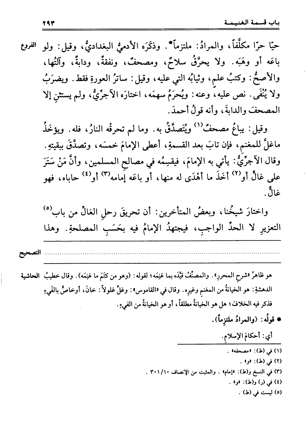 وَاخْتَارَ شَيْخُنَا وَبَعْضُ الْمُتَأَخِّرِينَ أَنَّ تحريق رحل الغال من باب5 التَّعْزِيرِ لَا الْحَدِّ الْوَاجِبِ, فَيَجْتَهِدُ الْإِمَامُ فِيهِ بحسب المصلحة, وهذا
