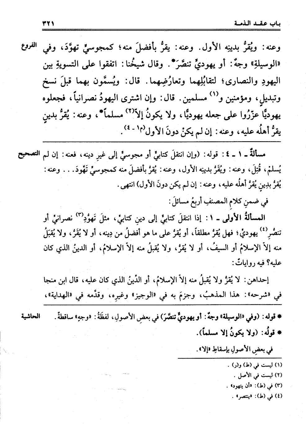 فِي ضِمْنِ كَلَامِ الْمُصَنِّفِ أَرْبَعُ مَسَائِلَ: