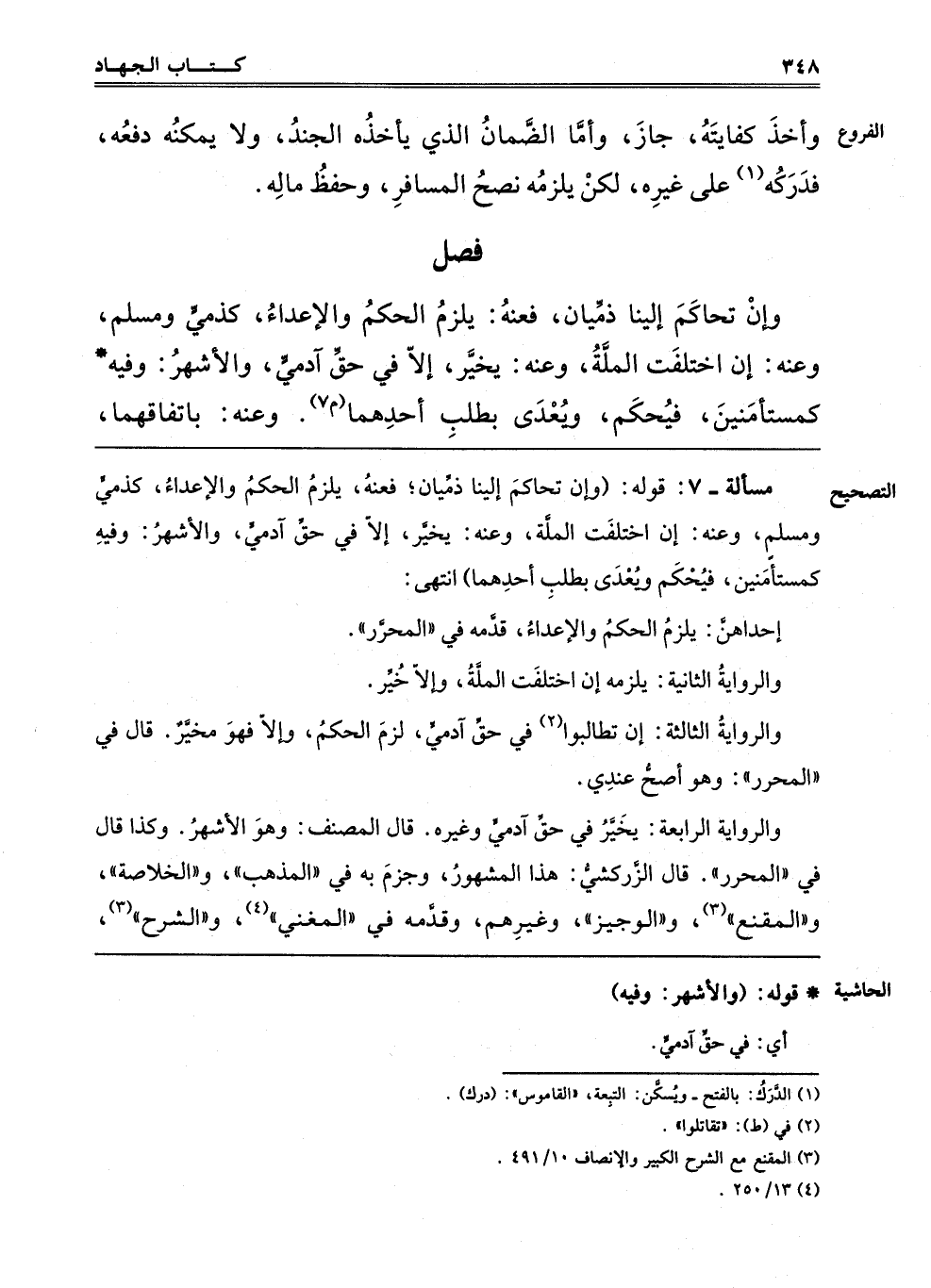 ـــــــــــــــــــــــــــــQمَسْأَلَةٌ 7" قَوْلُهُ "وَإِنْ تَحَاكَمَ إلَيْنَا ذِمِّيَّانِ فَعَنْهُ يَلْزَمُ الْحُكْمُ, وَالْإِعْدَاءُ كَذِمِّيٍّ وَمُسْلِمٍ وَعَنْهُ: إنْ اخْتَلَفَتْ الْمِلَّةُ, وَعَنْهُ يُخَيَّرُ إلَّا فِي حَقِّ آدمي, والأشهر: وفيه كمستأمنين, فيحكم ويعدي بطلب أَحَدِهِمَا" انْتَهَى.