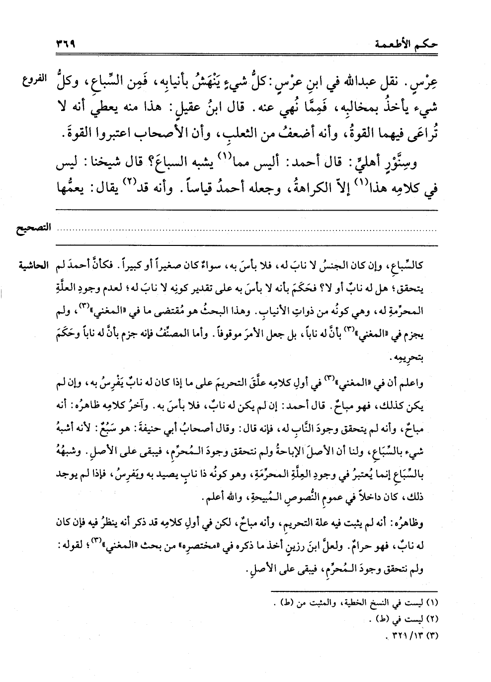 عُرْسٍ, نَقَلَ عَبْدُ اللَّهِ فِي ابْنِ عُرْسٍ: كُلُّ شَيْءٍ يَنْهَشُ بِأَنْيَابِهِ, فَمِنْ السِّبَاعِ, وَكُلُّ شَيْءٍ يَأْخُذُ بِمَخَالِبِهِ, فَمِمَّا نُهِيَ عَنْهُ, قَالَ ابْنُ عَقِيلٍ: هَذَا مِنْهُ يُعْطِي أَنَّهُ لَا تُرَاعَى فِيهِمَا الْقُوَّةُ وَأَنَّهُ أَضْعَفُ مِنْ الثَّعْلَبِ, وَأَنَّ الْأَصْحَابَ اُعْتُبِرُوا الْقُوَّةَ.