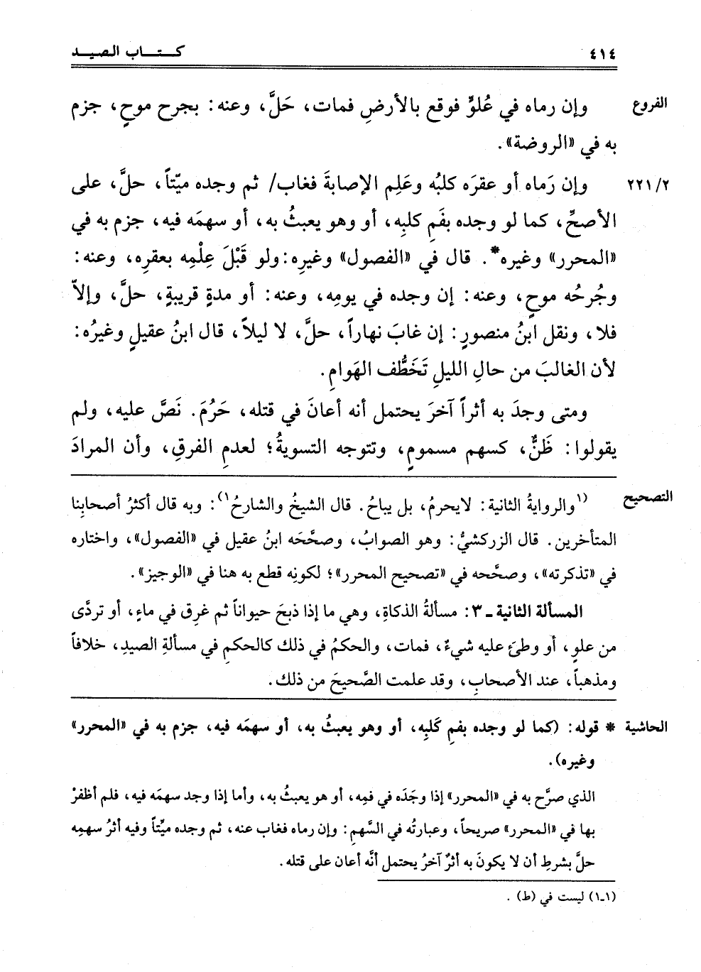 "الْمَسْأَلَةُ الثَّانِيَةُ 3" مَسْأَلَةُ الذَّكَاةِ, وَهِيَ مَا إذَا ذَبَحَ حَيَوَانًا ثُمَّ غَرِقَ فِي مَاءٍ أَوْ تَرَدَّى مِنْ عُلُوٍّ أَوْ وَطِئَ عَلَيْهِ شَيْءٌ فَمَاتَ, وَالْحُكْمُ فِي ذَلِكَ كَالْحُكْمِ فِي مَسْأَلَةِ الصَّيْدِ خِلَافًا وَمَذْهَبًا, عِنْدَ الْأَصْحَابِ, وقد علمت الصحيح من ذلك.