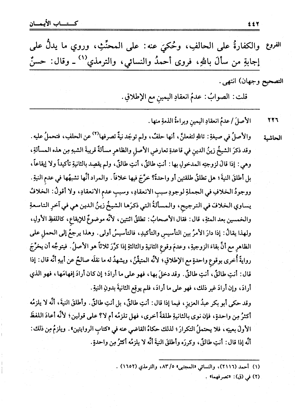 "قُلْت": الصَّوَابُ عَدَمُ انْعِقَادِ الْيَمِينِ مع الإطلاق.