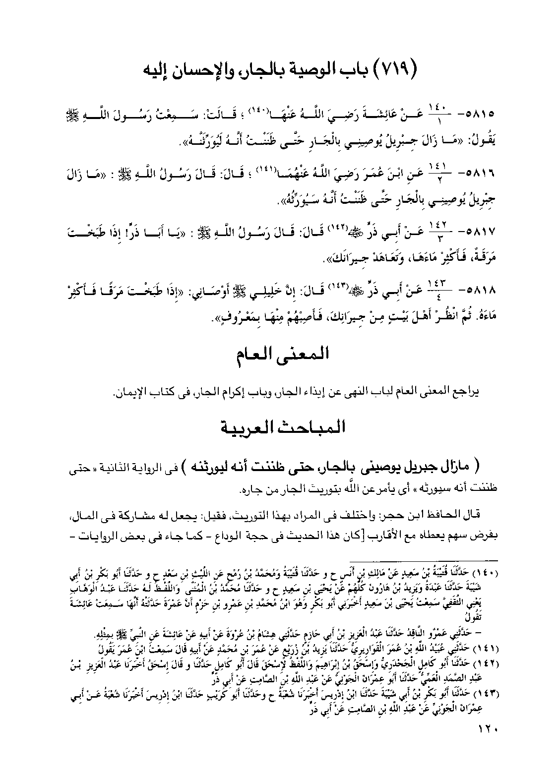 5816 - عن ابن عمر رضي الله عنهما قال قال رسول الله صلى الله عليه وسلم "مازال جبريل يوصيني بالجار حتى ظننت أنه سيورثه"