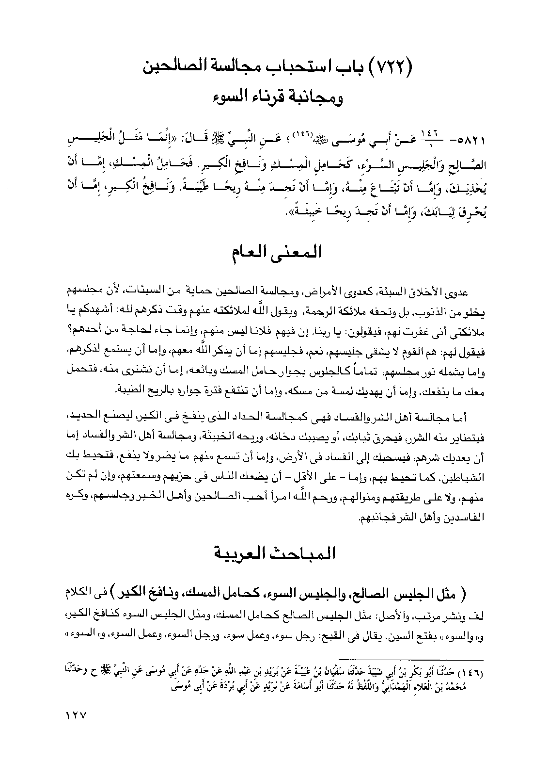 (722) باب استحباب مجالسة الصالحين ومجانبة قرناء السوء