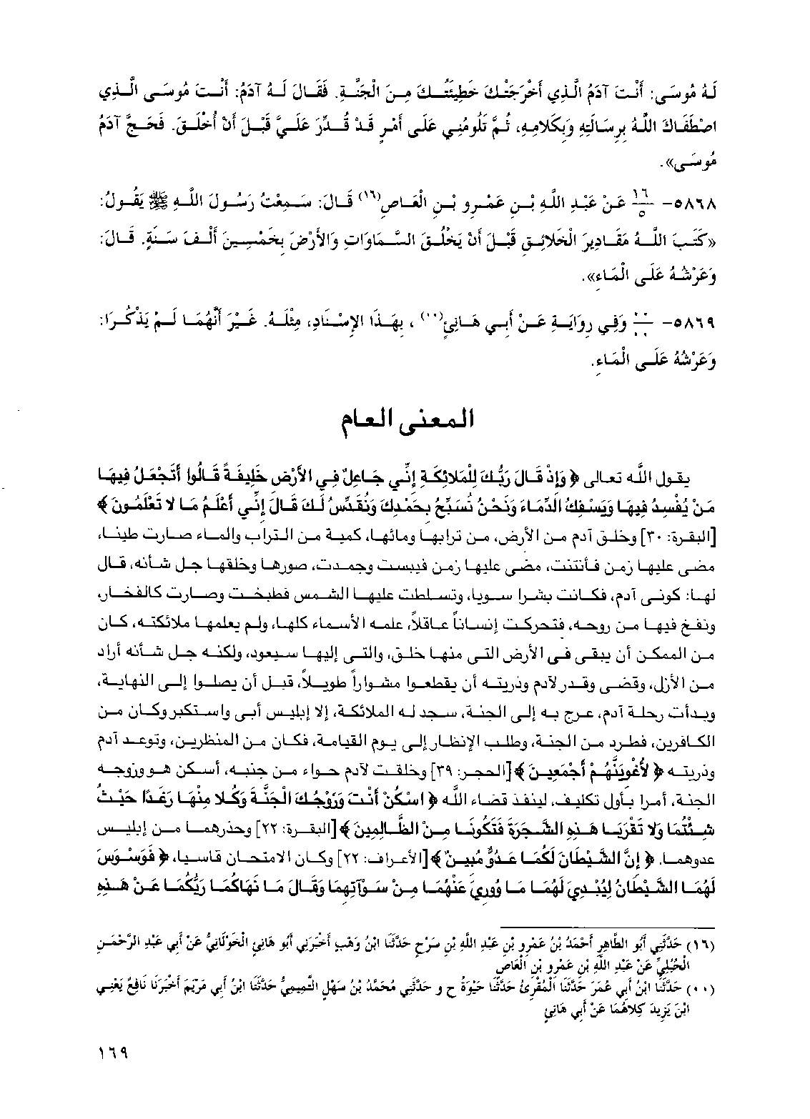 5868 - عن عبد الله بن عمرو بن العاص قال سمعت رسول الله صلى الله عليه وسلم يقول "كتب الله مقادير الخلائق قبل أن يخلق السماوات والأرض بخمسين ألف سنة قال وعرشه على الماء"