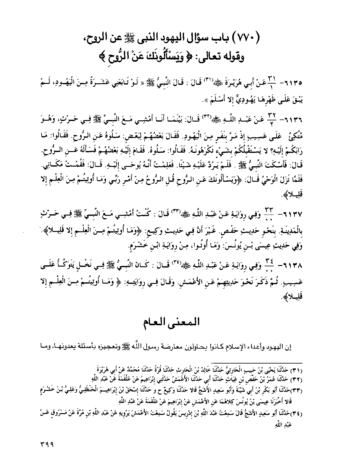 (770) باب سؤال اليهود النبي صلى الله عليه وسلم عن الروح وقوله تعالى {ويسألونك عن الروح}