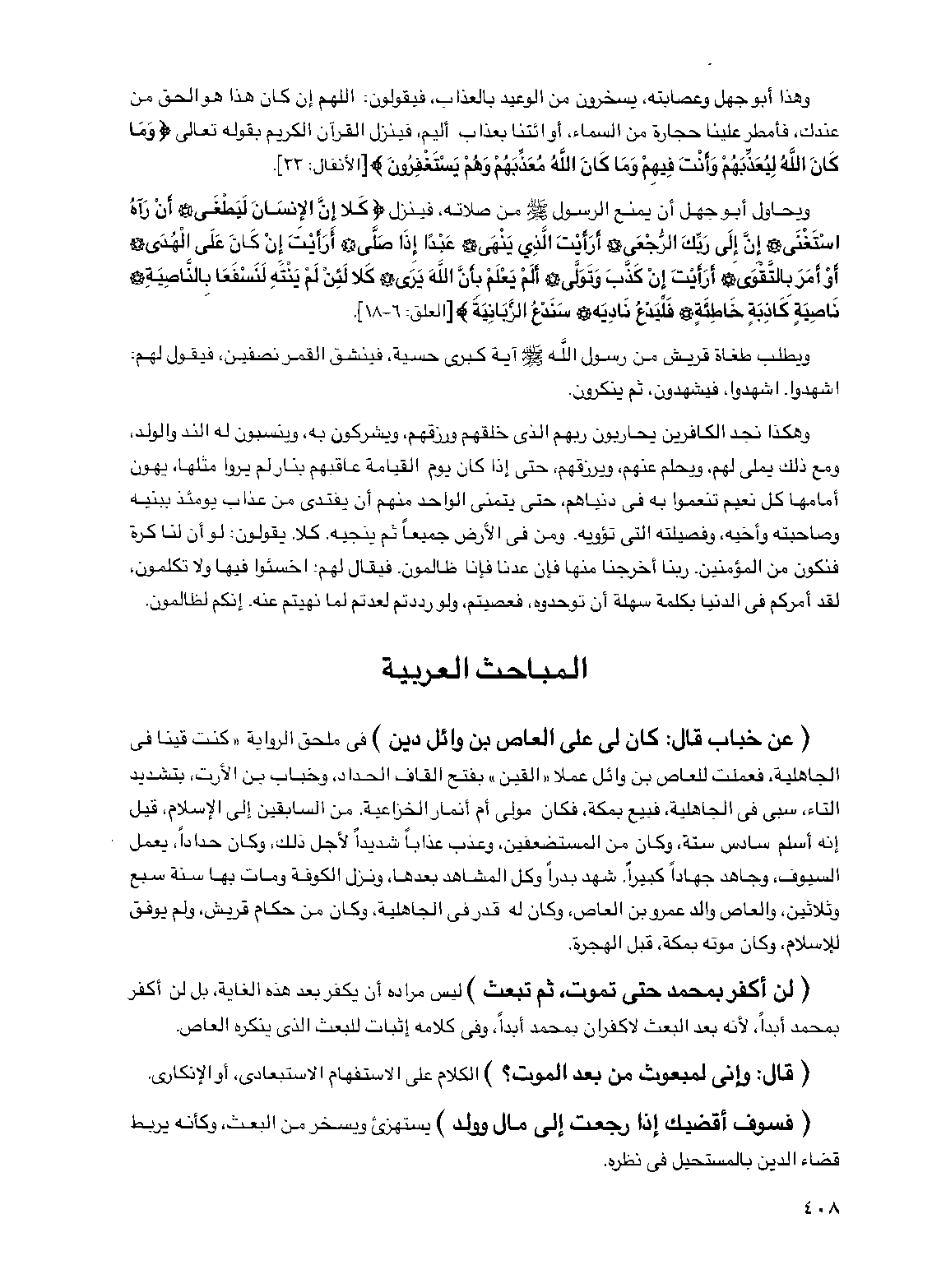 (فسوف أقضيك إذا رجعت إلى مال وولد) يستهزئ ويسخر من البعث وكأنه يربط قضاء الدين بالمستحيل في نظره