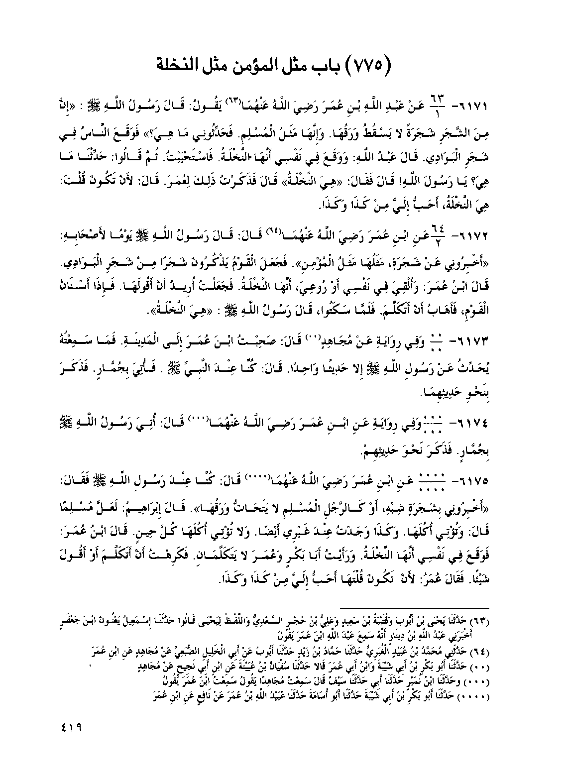 (775) باب مثل المؤمن مثل النخلة
