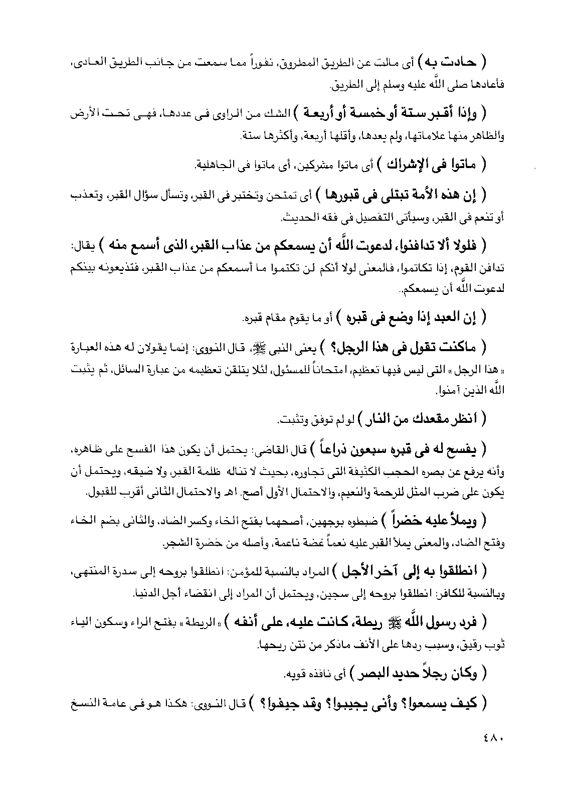 (ويملأ عليه خضرا) ضبطوه بوجهين أصحهما بفتح الخاء وكسر الضاد والثاني بضم الخاء وفتح الضاد والمعنى يملأ القبر عليه نعما غضة ناعمة وأصله من خضرة الشجر