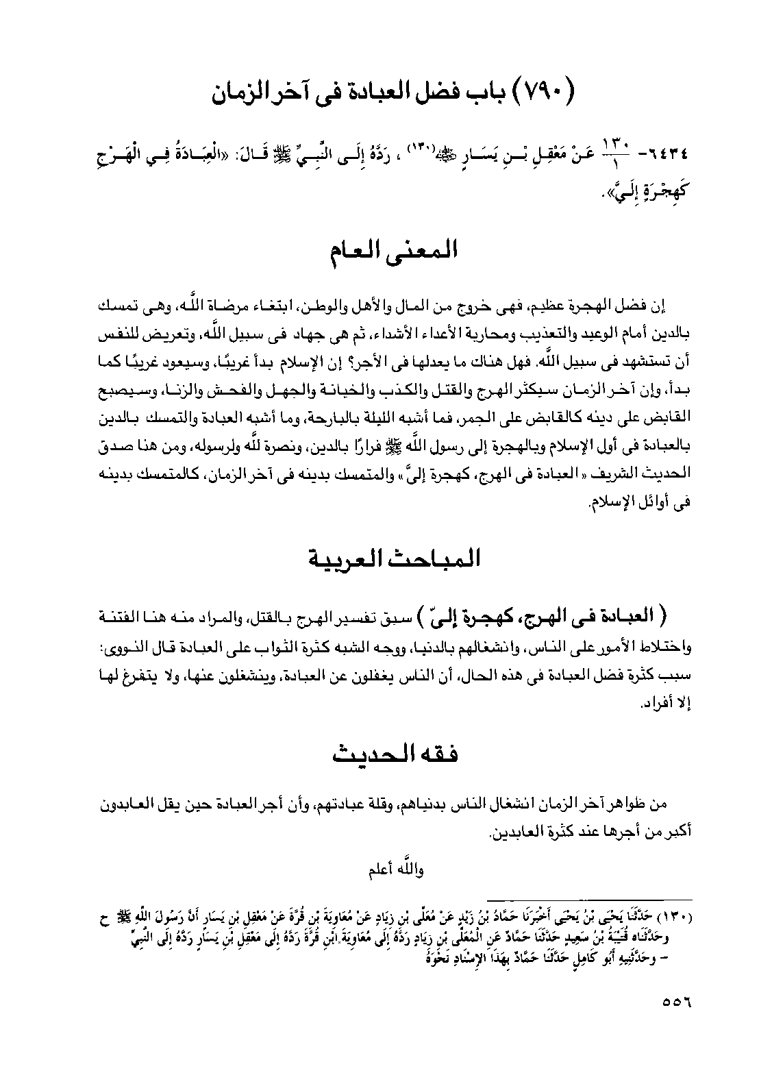 6434 - عن معقل بن يسار رضي الله عنه رده إلى النبي صلى الله عليه وسلم قال "العبادة في الهرج كهجرة إلي"