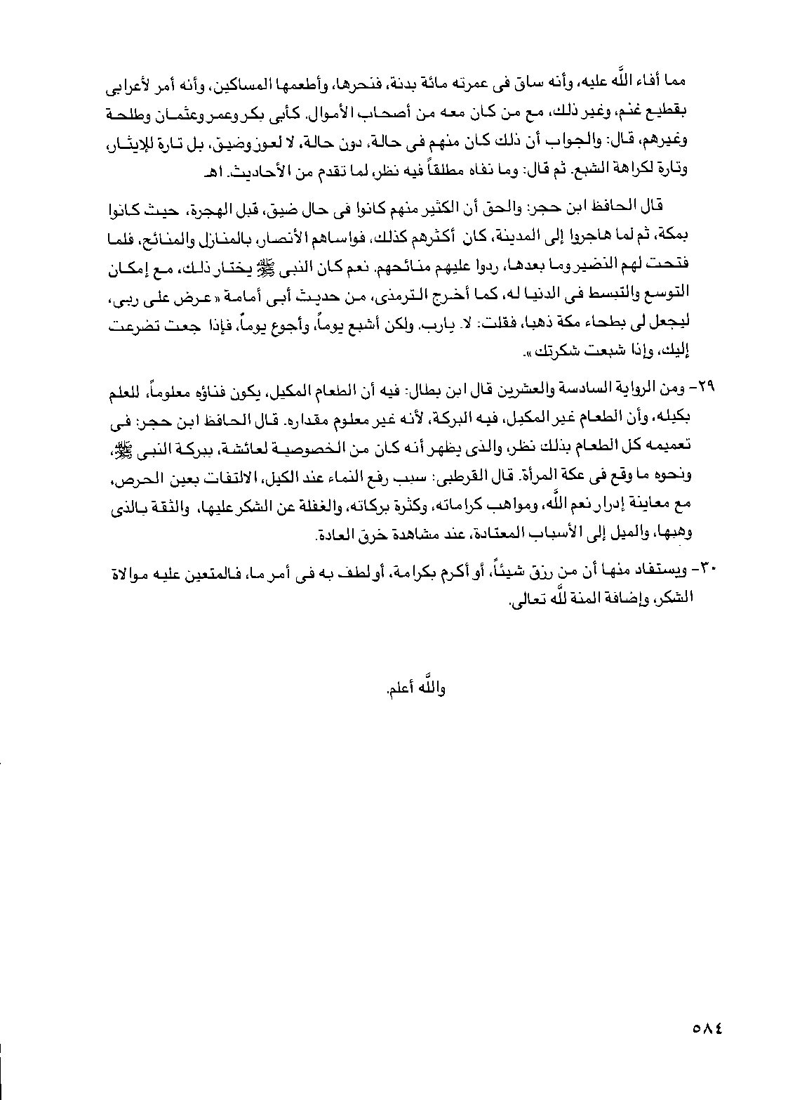 مما أفاء الله عليه وأنه ساق في عمرته مائة بدنة فنحرها وأطعمها المساكين وأنه أمر لأعرابي بقطيع غنم وغير ذلك مع من كان معه من أصحاب الأموال كأبي بكر وعمر وعثمان وطلحة وغيرهم قال والجواب أن ذلك كان منهم في حالة دون حالة لا لعوز وضيق بل تارة للإيثار وتارة لكراهة الشبع ثم قال وما نفاه مطلقا فيه نظر لما تقدم من الأحاديث اهـ