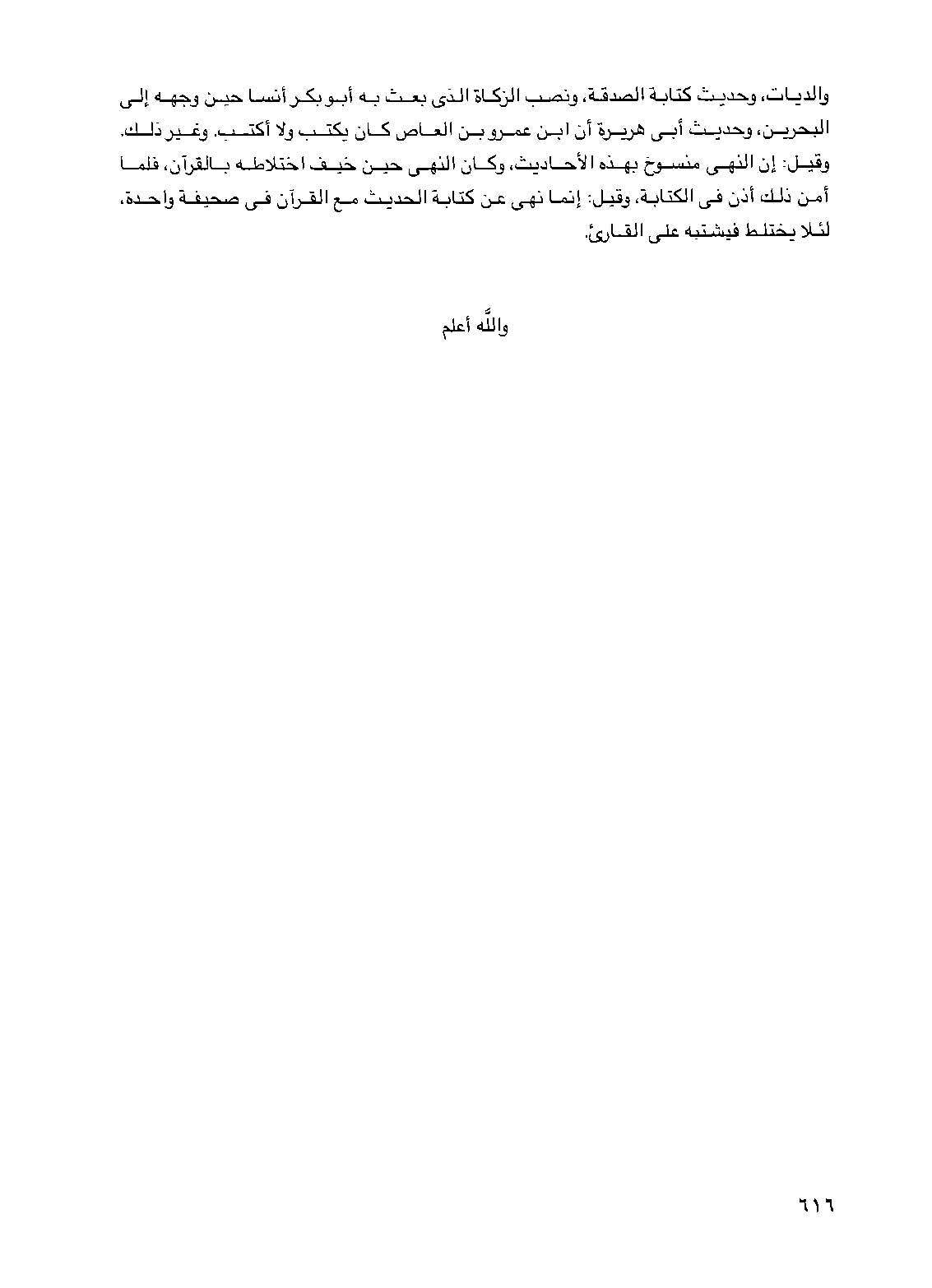 والديات وحديث كتابة الصدقة ونصب الزكاة الذي بعث به أبو بكر أنسا حين وجهه إلى البحرين وحديث أبي هريرة أن ابن عمرو بن العاص كان يكتب ولا أكتب وغير ذلك وقيل إن النهي منسوخ بهذه الأحاديث وكان النهي حين خيف اختلاطه بالقرآن فلما أمن ذلك أذن في الكتابة وقيل إنما نهي عن كتابة الحديث مع القرآن في صحيفة واحدة لئلا يختلط فيشتبه على القارئ
