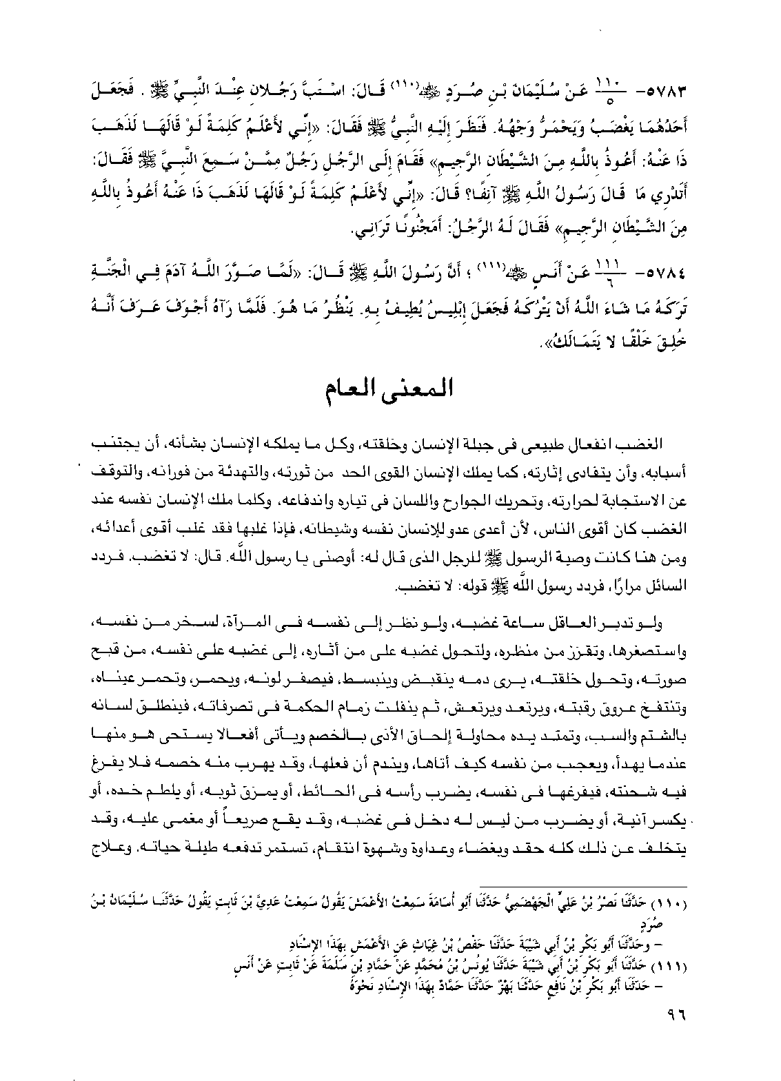 5783 - عن سليمان بن صرد رضي الله عنه قال استب رجلان عند النبي صلى الله عليه وسلم فجعل أحدهما يغضب ويحمر وجهه فنظر إليه النبي صلى الله عليه وسلم فقال "إني لأعلم كلمة لو قالها لذهب ذا عنه أعوذ بالله من الشيطان الرجيم" فقام إلى الرجل رجل ممن سمع النبي صلى الله عليه وسلم فقال أتدري ما قال رسول الله صلى الله عليه وسلم آنفا قال "إني لأعلم كلمة لو قالها لذهب ذا عنه أعوذ بالله من الشيطان الرجيم" فقال له الرجل أمجنونا تراني.