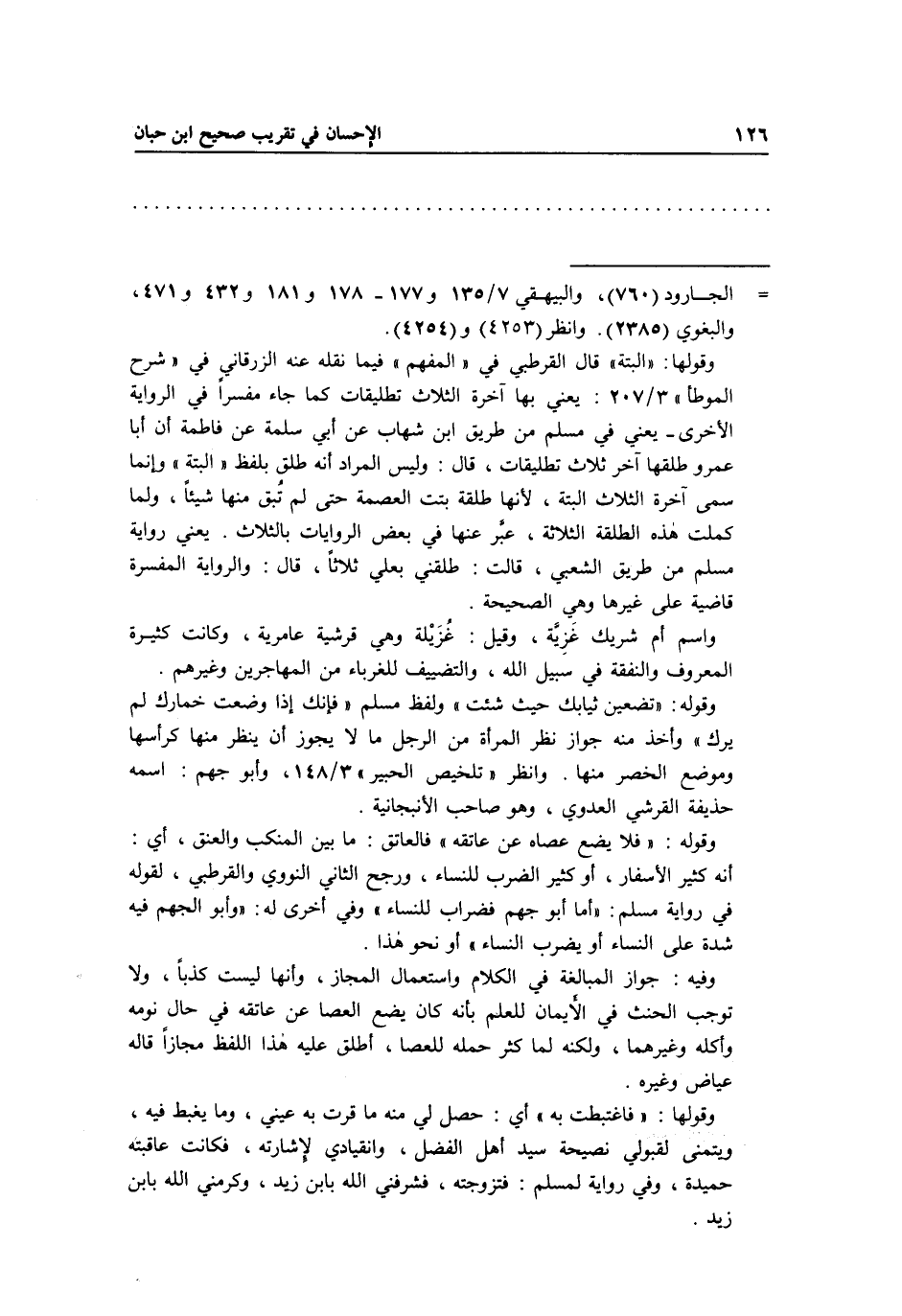 وقولها: " البتة " قال القرطبي في " المفهم " فيما نقله عنه الزرقاني في " شرح الموطأ " 3/207: يعني بها آخرة الثلاث تطليقات كما جاء مفسراً في الرواية الأخرى - يعني في مسلم من طريق ابن شهاب عن أبي سلمة عن فاطمة أن أبا عمرو طلقها آخر ثلاث تطليقات، قال: وليس المراد أنه طلق بلفظ " البتة " وإنما سمى آخرة الثلاث البتة، لأنها طلقة بتت العصمة حتي لم تبق منها شيئاً، ولما كملت هذه الطلقة الثلاثة، عبر عنها في بعض الروايات بالثلاث. يعني رواية مسلم من طريق الشعبي، قالت: طلقني بعلي ثلاثاً، قال: والرواية المفسرة قاضية على غيرها وهي الصحيحة.
