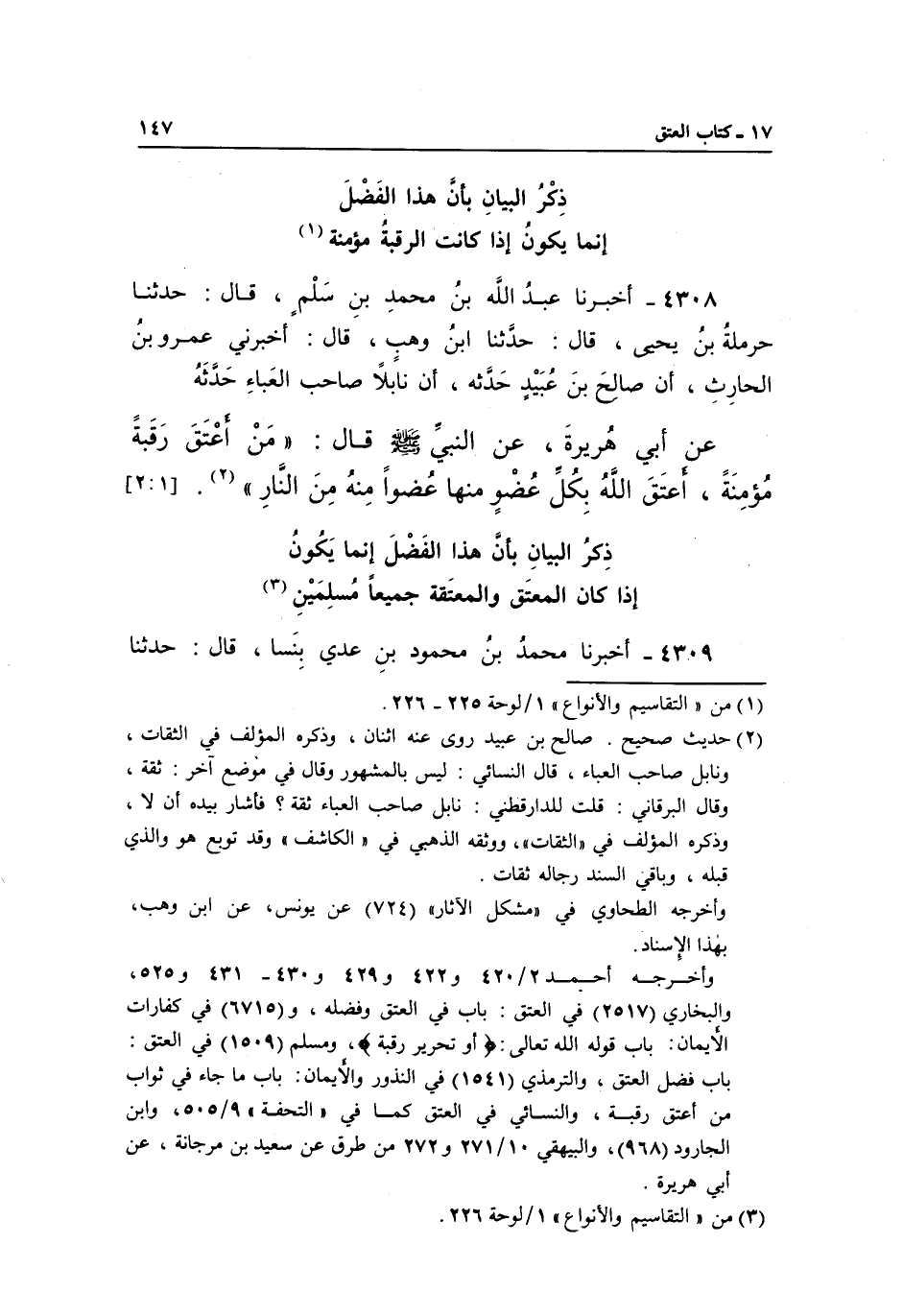ذِكْرُ الْبَيَانِ بِأَنَّ هَذَا الْفَضْلِ إِنَّمَا يَكُونُ إِذَا كَانَتِ الرَّقَبَةُ مُؤْمِنَةً1