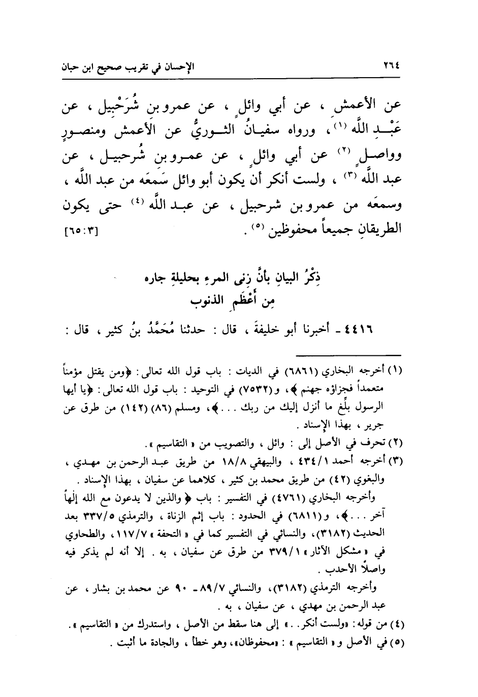 عَنِ الْأَعْمَشِ، عَنْ أَبِي وَائِلٍ، عَنْ عَمْرِو بْنِ شُرَحْبِيلَ، عَنْ عَبْدِ اللَّهِ1، وَرَوَاهُ سُفْيَانُ الثَّوْرِيُّ عَنِ الْأَعْمَشِ وَمَنْصُورٌ وَوَاصِلٌ2 عَنْ أَبِي وَائِلٍ، عَنْ عَمْرِو بْنِ شُرَحْبِيلَ، عَنْ عَبْدِ اللَّهِ3، وَلَسْتُ أُنْكِرُ أَنْ يَكُونَ أَبُو وَائِلٍ سَمِعَهُ مِنْ عَبْدِ اللَّهِ، وَسَمِعَهُ مِنْ عَمْرِو بْنِ شُرَحْبِيلَ، عَنْ عَبْدِ اللَّهِ4 حَتَّى يَكُونَ الطريقان جميعا محفوظين5.