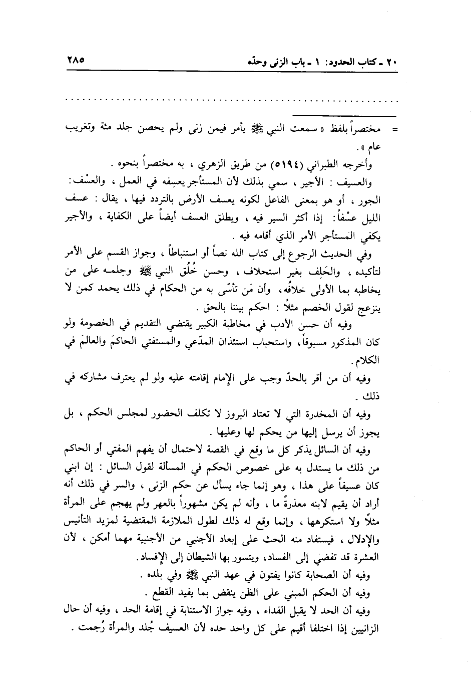 وفيه أن السائل يذكر كل ما وقع في القصة لاحتمال أن يفهم المفتي أو الحاكم من ذلك ما يستدل به على خصوص الحكم في المسألة لقول السائل: إن ابني كان عسيفاً على هذا، وهو إنما جاء يسأل عن حكم الزنى، والسر في ذلك أنه أراد أن يقيم لابنه معذرةً ما، وأنه لم يكن مشهوراً بالعهر ولم يهجم على المرأة مثلاً ولا استكرهها، وإنما وقع له ذلك لطول الملازمة المقتضية لمزيد التأنيس والإدلال، فيستفاد منه الحث على إبعاد الأجنبي من الأجنبية مهما أمكن، لأن العشرة قد تفضي على الفساد، ويتسور بها الشيطان إلى الإفساد.
