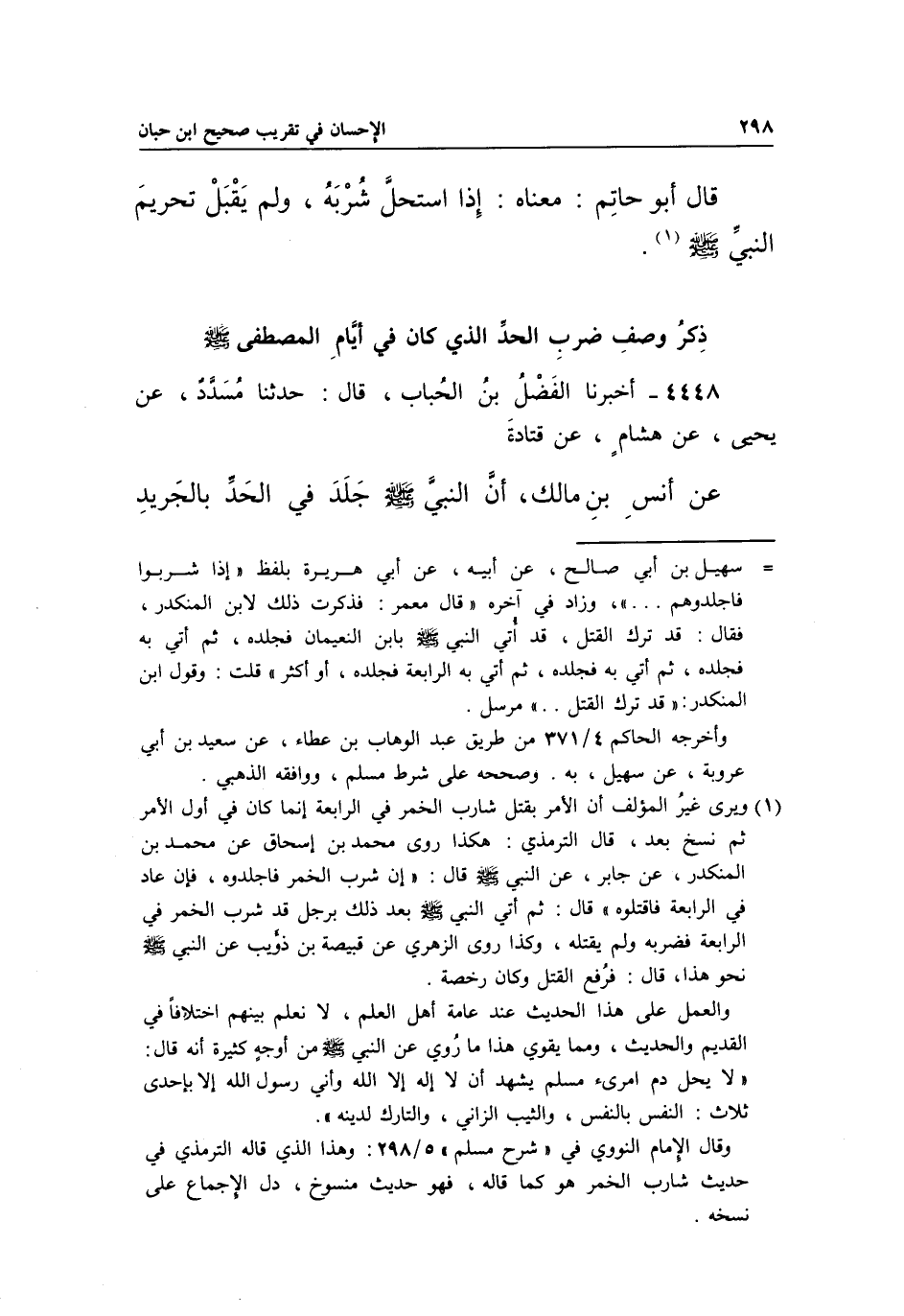 ذِكْرُ وَصْفِ ضَرْبِ الْحَدِّ الَّذِي كَانَ فِي أَيَّامِ الْمُصْطَفَى صَلَّى اللَّهُ عَلَيْهِ وَسَلَّمَ