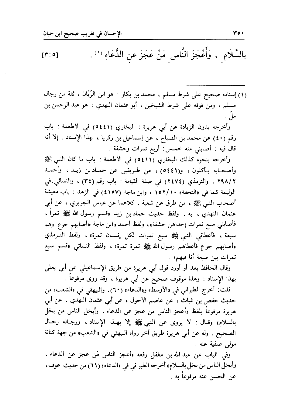 قلت: أخرج الطبراني في "الأوسط" و"الدعاء" 60، والبيهقي في "الشعب" من طريق حفص بن عياث، عن عاصم الأحول، عن أبي عثمان النهدي، عن أبي هريرة مرفوعاً بلفظ أعجز الناس من عجز عن الدعاء، وأبخل الناس من بخل بالسلام وقال: لا يروي عن النبي صلى الله عليه وسلم إلا بهذا الإسناد، ورجاله رجال الصحيح. وله عن أبي هريرة طريق آخر رواه البيهقي في "الشعب" من جهة كنانة مولى صفية عنه.