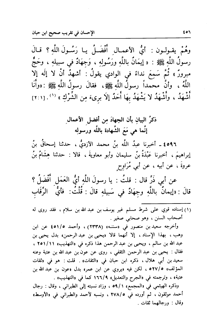 ذِكْرُ الْبَيَانِ بِأَنَّ الْجِهَادَ مِنْ أَفْضَلِ الْأَعْمَالِ إِنَّمَا هِيَ مَعَ الشَّهَادَةِ بِاللَّهِ وَرَسُولِهِ