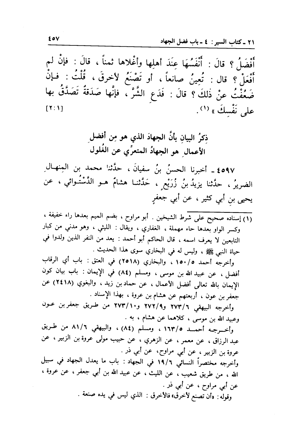 ذِكْرُ الْبَيَانِ بِأَنَّ الْجِهَادَ الَّذِي هُوَ مِنْ أَفْضَلِ الْأَعْمَالِ هُوَ الْجِهَادُ الْمُتَعَرِّي عَنِ الْغُلُولِ
