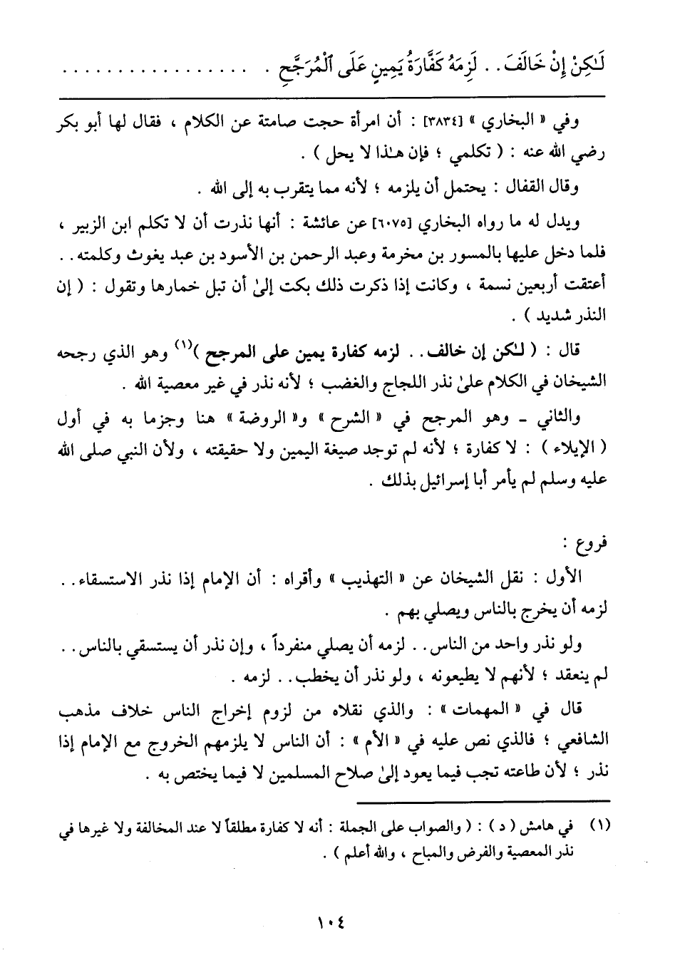لَكِنْ إِنْ خَالَفَ .. لَزِمَهُ كَفَّارَةُ يَمِينٍ عَلَى الْمُرَجَّحِ