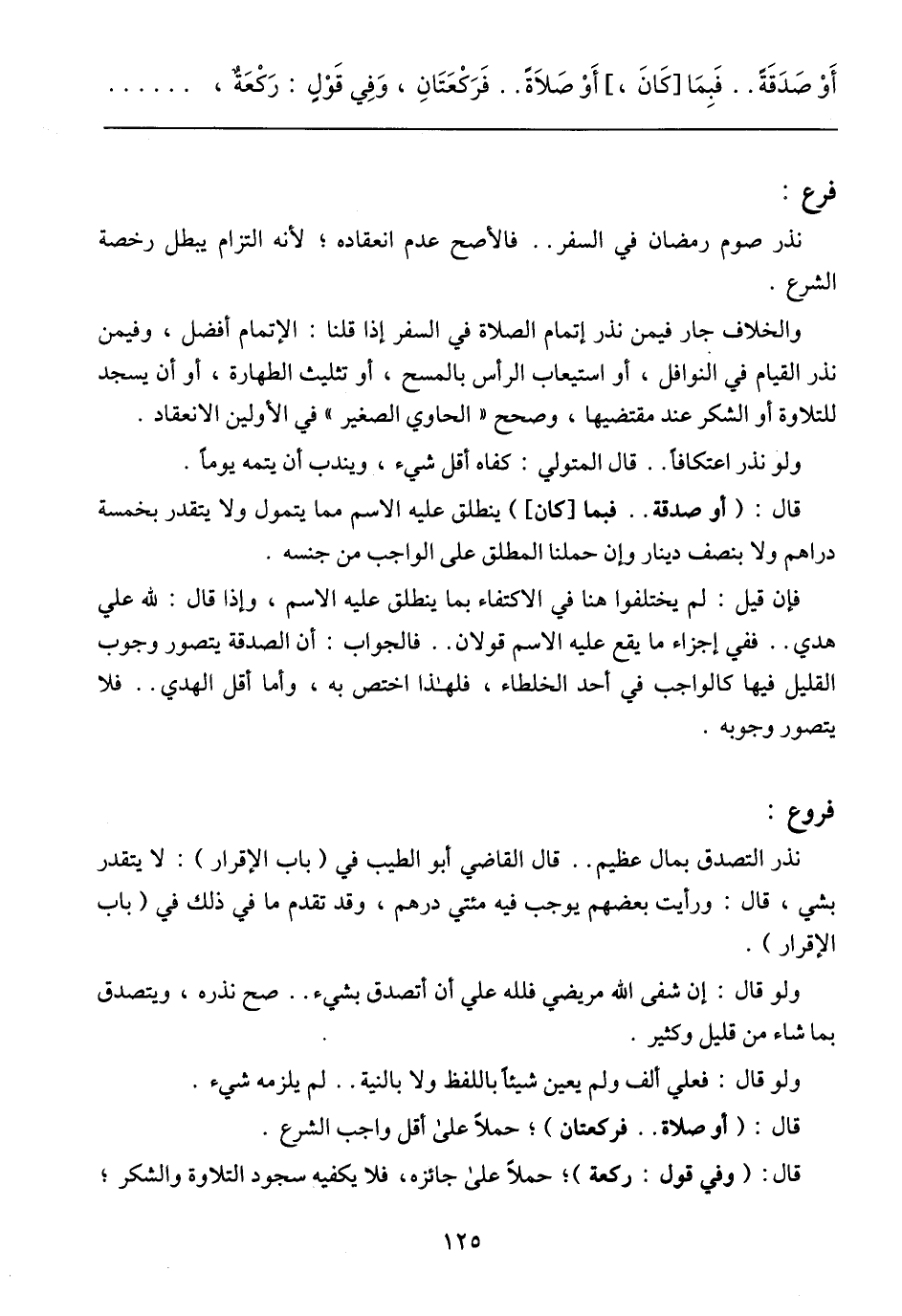 نذر التصدق بمال عظيم .. قال القاضي أبو الطيب في (باب الإقرار): لا يتقدر بشيء، قال: ورأيت بعضهم يوجب فيه مئتي درهم، وقد تقدم ما في ذلك في (باب الإقرار).