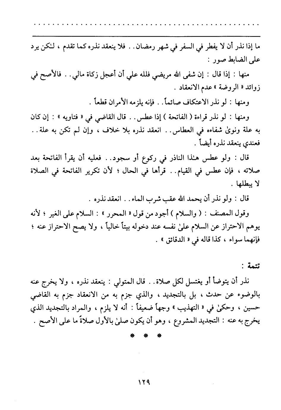 منها: إذا قال: إن شفى الله مريضي فالله علي أن أعجل زكاة مالي .. فالأصح في زوائد (الروضة) عدم الانعقاد.