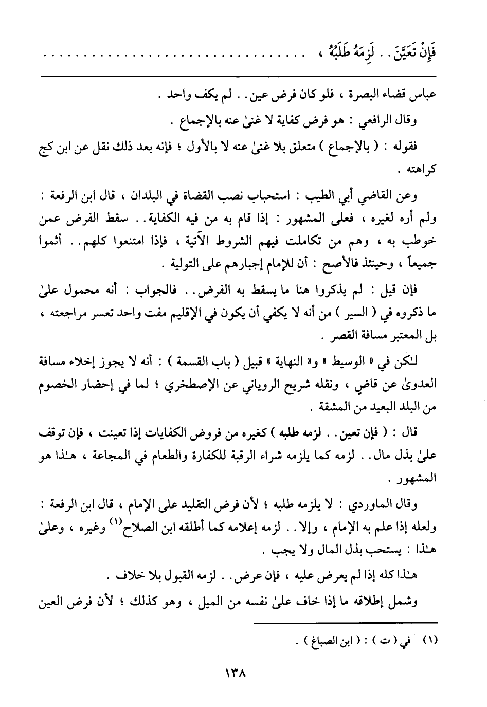 عباس قضاء البصرة، فلو كان فرض عين .. لم يكف واحد.