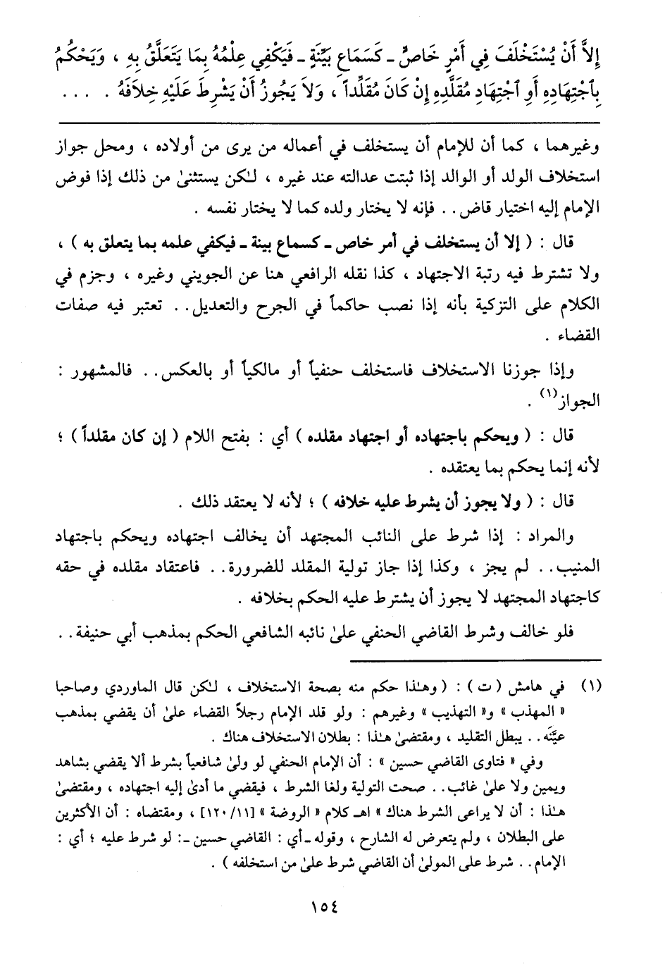 والمراد: إذا شرط على النائب المجتهد أن يخالف اجتهاده ويحكم باجتهاد المنيب .. لم يجز، وكذا إذا جاز تولية المقلد للضرورة .. فاعتقاد مقلده في حقه كاجتهاد المجتهد لا يجوز أن يشترط عليه الحكم بخلافه.