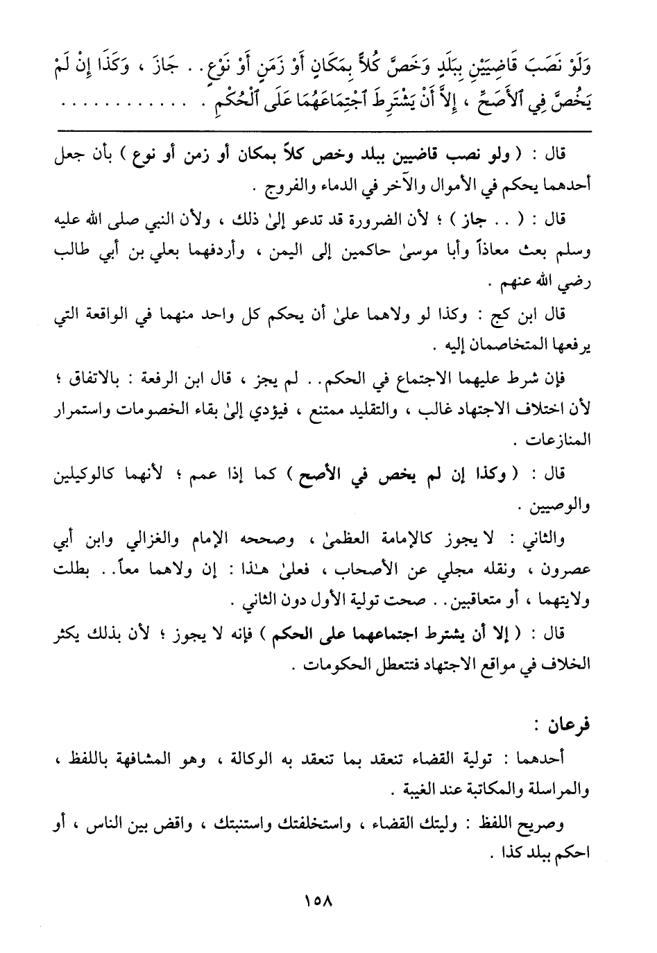 فإن شرط عليهما الاجتماع في الحكم .. لو يجز، قال ابن الرفعة: بالاتفاق؛ لأن اختلاف الاجتهاد غالب، والتقليد ممتنع، فيؤدي إلى بقاء الخصومات واستمرار المنازعات.