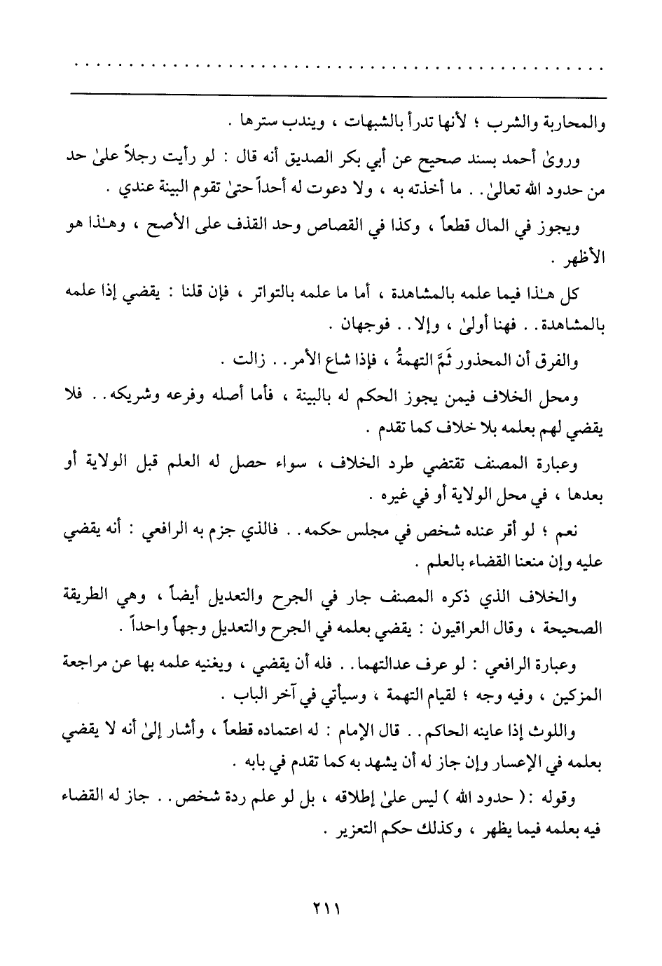 وروى أحمد بسند صحيح عن أبي بكر الصديق أنه قال: لو رأيت رجلًا على حد من حدود الله تعالى .. ما أخذته به، ولا دعوت له أحدًا حتى تقوم البينة عندي.