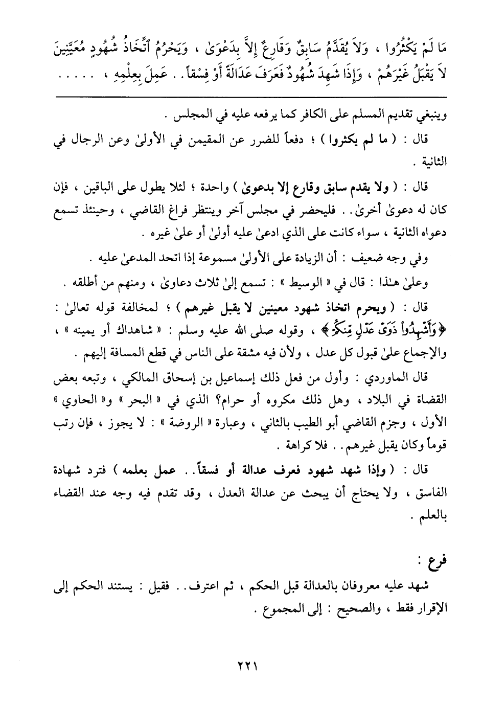 مَا لَمْ يَكْثُرُوا، وَلاَ يُقَدَّمُ َسَابِقٌ وَقَارِعٌ إِلاَّ بِدَعْوَى، وَيَحْرُمُ اتِّخَاذُ شُهُودٍ مُعَيَّنِينَ لاَ يَقْبَلُ غَيْرَهُمْ، وَإِذَا شَهِدَ شُهُودٌ فَعَرَفَ عَدَالَةً أَوْ فِسْقًا .. عَمِلَ بِعِمْلِهِ،