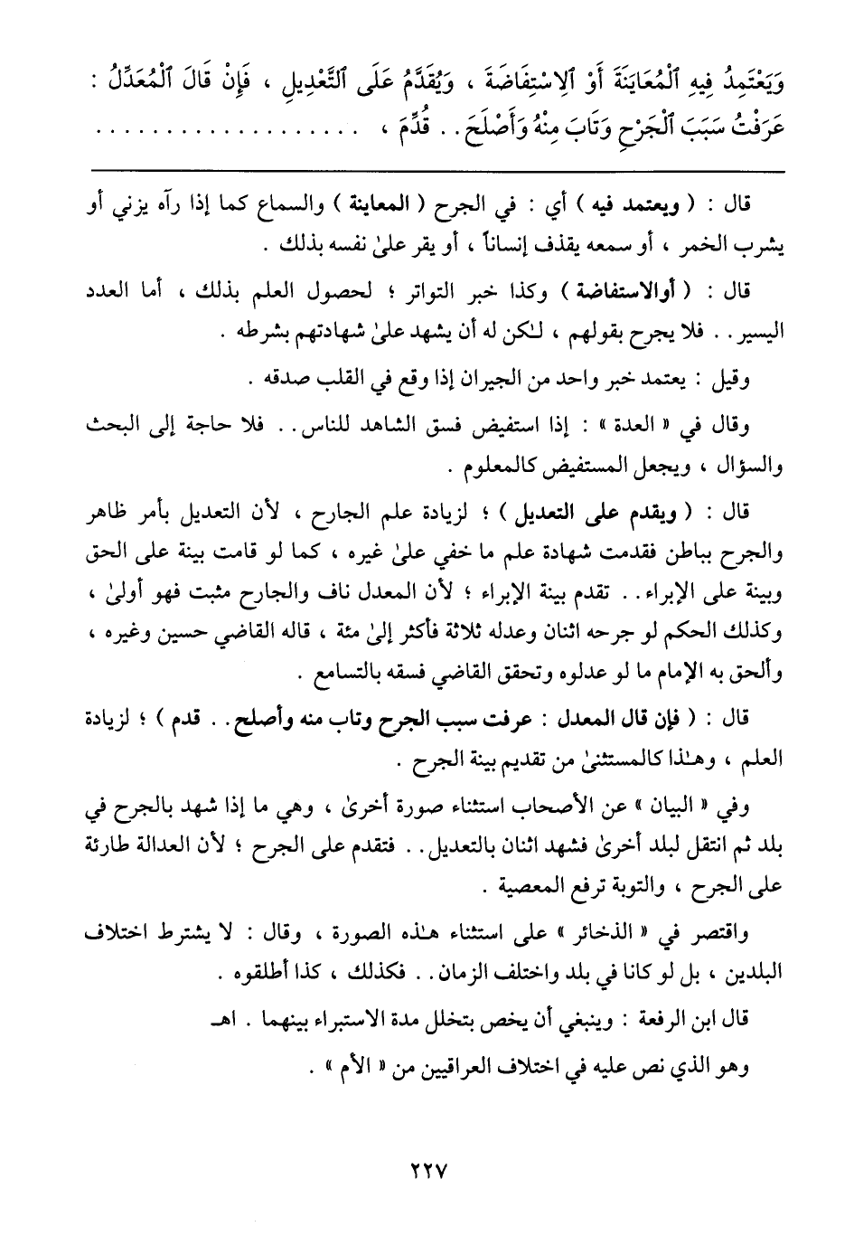 وقال: (ويقدم على التعديل)؛ لزيادة علم الجارح، لأن التعديل بأمر ظاهر والجرح بباطن فقدمت شهادة علم ما خفي على غيره، كما لو قامت بينة على الحق وبينة على الإبراء .. تقدم بينة الإبراء؛ لأن المعدل ناف والجارح مثبت فهو أولى، وكذلك الحكم لو جرحه اثنان وعدله ثلاتة فأكثر إلى مئة، قاله القاضي حسين وغيره، وألحق به الإمام ما لو عدلوه وتحقق القاضي فسقه بالتسامع.