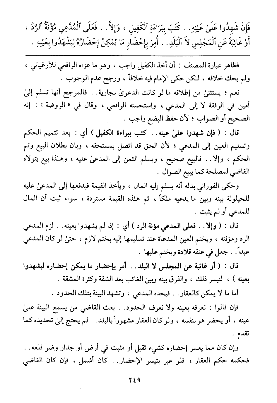 فَإِنْ شَهِدُوا عَلَى عَيْنِه ... كَتَبَ بِبَرَاءَةِ اَلْكَفِيلِ, وَإِلّا .. فَعَلى اَلمُدَّعِي مُؤْنَةُ الرَّدِّ, أَوْ غَائِبَةُ عَنِ المَجلِسِ لاَ الَبلَدِ .. أُمِرَ بِإِحضَارِ مَا يُمكِنُ إِحضَارُهُ لِيَشهَدُوا بِعَيْنِهِ