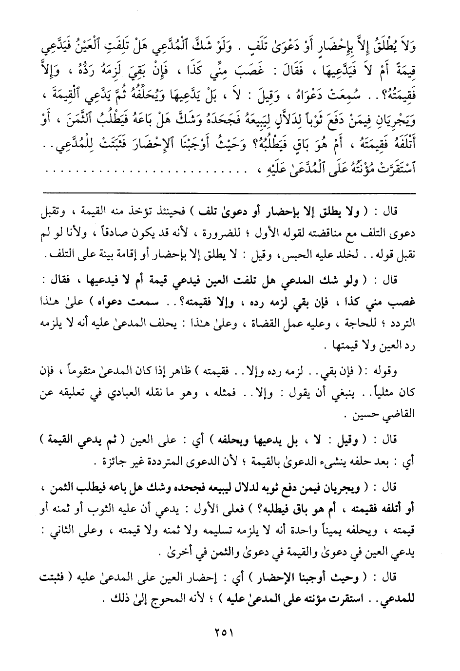 وَلَاَ يُطلَقُ إِلاَّ بإِحْضَارٍ أَوْ دَعْوَى تَلَفٍ. وَلَوْ شَكَّ اَلمُدَّعِي هَلْ تَلِفَتِ الَعَيْنُ فَيَدَّعِي قِيمَةٌ أَمْ لاَ فَيَدَّعِيها, فَقَاَل: غَصَبَ مِنِّي كَذَا, فَإِنْ لَزِمَهُ رَدُّهُ, وَإِلَّا فَقِيمَتُةُ؟ .... سُمِعَتٌ دَعْوَاهُ, وَقِيلَ: لَا, بَلْ يَدَّعِيهَا وَيُحَلِّفيُهُ ثُمَّ يَدِّعي الْقيِمَةَ, وَيَجْرِيَانِ فِيَمنْ دَفَعَ ثَوبًا لِدَلاَلٍ لِيبَيِعَهُ فَجَحَدَهُ وَشَكَّ هَلْ بَاعَهُ فَيَطْلُبُ الثَّمَنَ, أَو أَتْلَفَهٌ فَقِيمتَهٌ, أَمْ هُوَ بَاقٍ فَيطْلُبُهُ؟ وحَيْثُ أَوجَبْنَا الإِحضَارَ فَثَبَتَت للِمُدَّعِي ... اسْتَقَرَّت مُؤنَتُهُ عَلَى الَمُدَّعَى عَلَيْهِ,