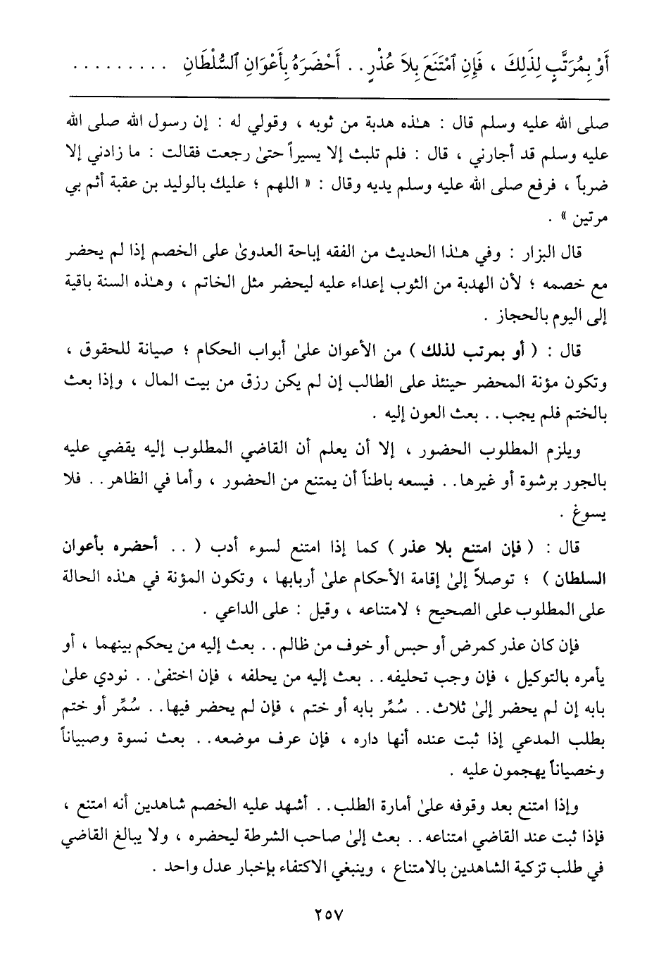 أَوْ بِمُرَتَّبُ لِذَلِكَ¸فَإِنِ أمَتَنَع بِلَا عُذْرٍ .. أَحْضَرَهُ بِأَعْوَانِ الَسُّلْطَانِ