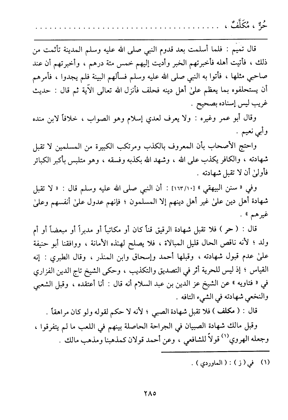 حُرٌّ، مُكَلَّفٌ،