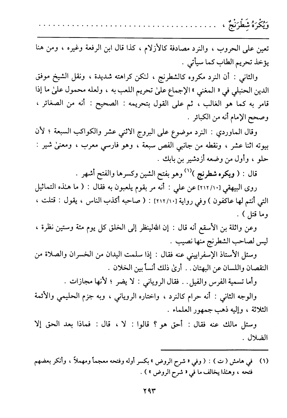 قال: (ويكره شطرنج) وهو بفتح الشين وكسرها والفتح أشهر.
