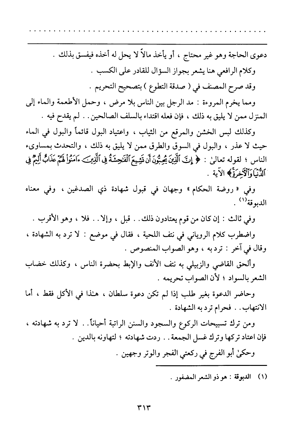 واضطرب كلام الروياني في نتف اللحية، فقال في موضع: لا ترد به الشهادة، وقال في آخر: ترد به، وهو الصواب المنصوص.
