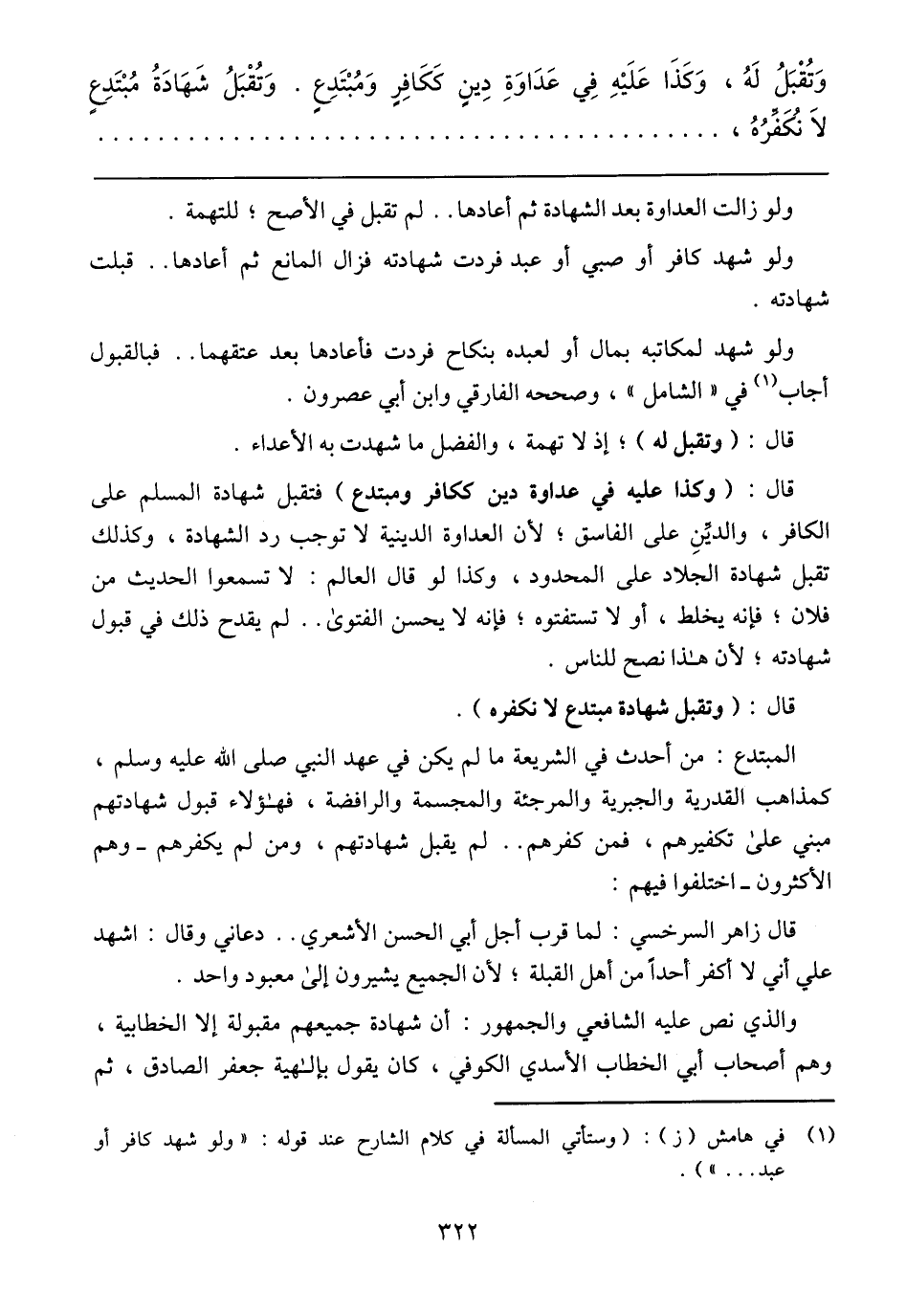 المبتدع: من أحدث في الشريعة ما لم يكن في عهد النبي صلى الله عليه وسلم, كمذاهب القدرية والجبرية والمرجئة والمجسمة والرافضة, فهؤلاء قبول شهادتهم مبني على تكفيرهم, فمن كفرهم .. لم يقبل شهادتهم, ومن لم يكفرهم –وهم الأكثرون- اختلفوا فيهم: