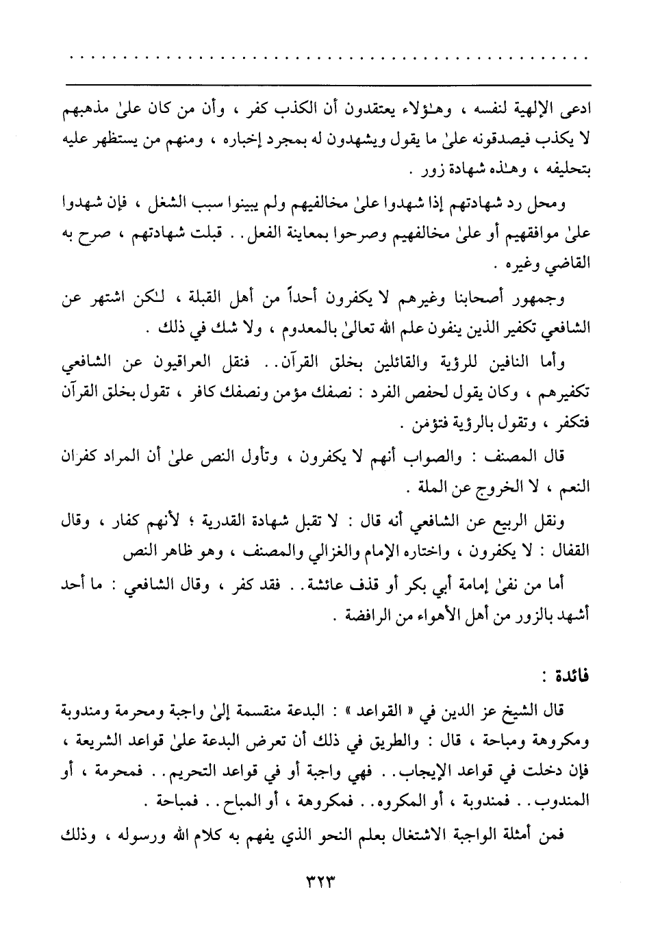 وجمهور أصحابنا وغيرهم لا يكفرون أحدًا من أهل القبلة, لكن اشتهر عن الشافعي تكفير الذين ينفون علم الله تعالى بالمعدوم, ولا شك في ذلك.