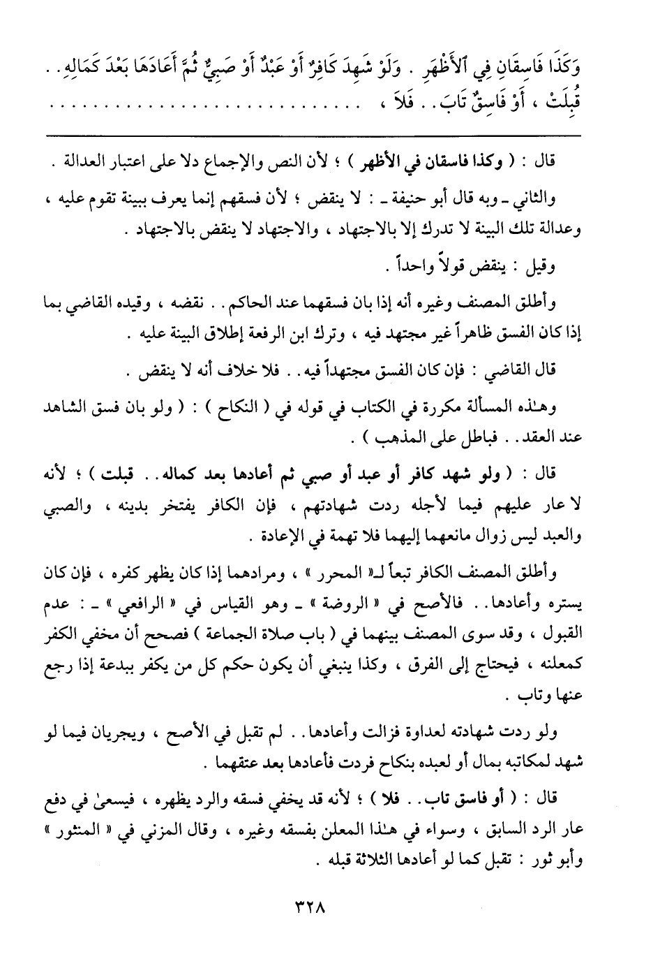 قال: (أو فاسق تاب .. فلا)؛ لأنه قد يخفى فسقه والرد يظهره, فيسعى في دفع عار الرد السابق, ويواء في هذا المعلن بفسقه وغيره, وقال المزني في (المنثور (وأبو ثور: تقبل كما لو أعادها الثلاثة قبله.