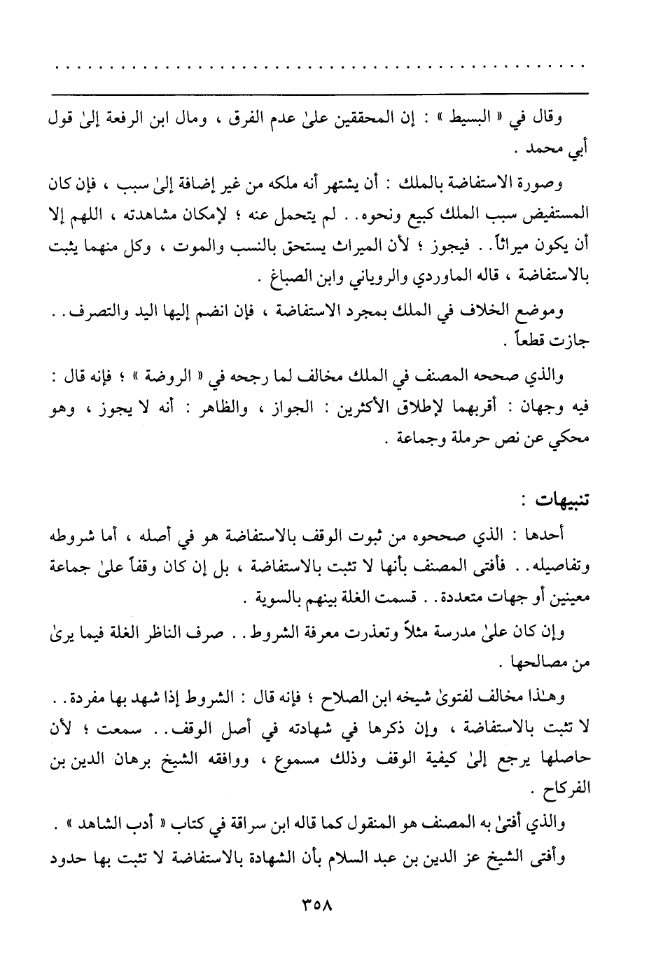 وهذا مخالف لفتوى شيخه ابن الصلاح؛ فإنه قال: الشروط إذا شهد بها مفردة .. لا تثبت بالاستفاضة، وإن ذكرها في شهادته في أصل الوقف .. سمعت؛ لأن حاصلها يرجع إلى كيفية الوقف وذلك مسموع، ووافقه الشيخ برهان الدين بن الفركاح.