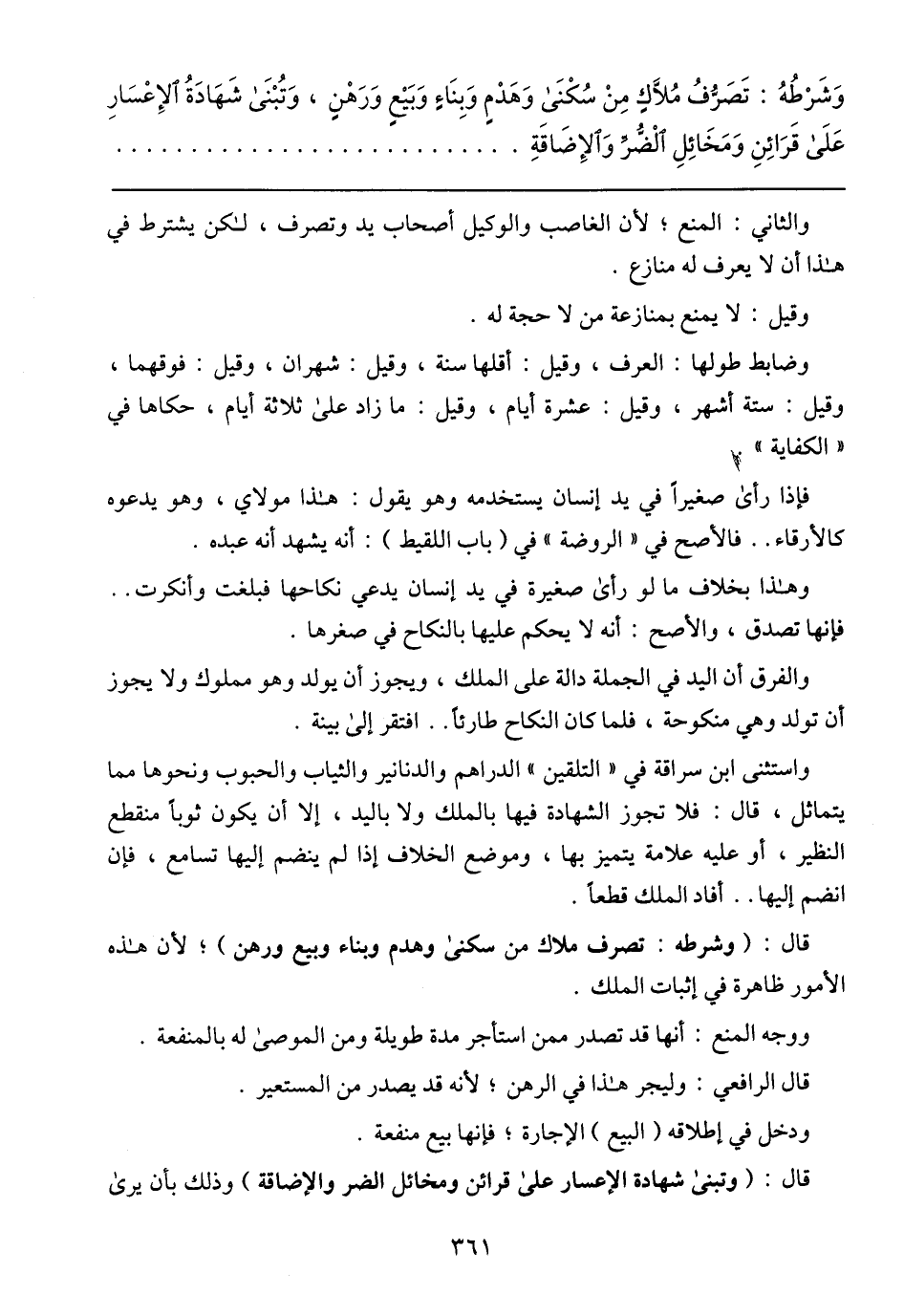 قال: (وشرطه: تصرف ملاك من سكنى وهدم وبناء وبيع ورهن)؛ لأن هذه الأمور ظاهرة في إثبات الملك.