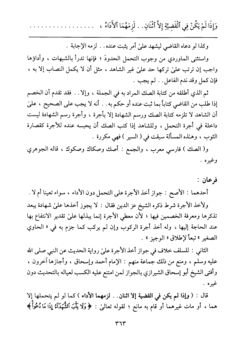 ثم الذي أطلقه من كتابه الصك المراد به في الجملة، وإلا .. فقد تقدم أن الخصم إذ طلب من القاضي كتابًا بما ثبت عنده أو حكم به .. أنه لا يجب على الصحيح، على أن الشاهد لا تلزمه كتابة الصك ورسم الشهادة إلا بأجرة، وأجرة رسم الشهادة ليست داخلة في أجرة التحمل، وللشاهد إذا كتب الصك أن يجبسه عنده للأجرة كقصارة الثواب، وهذه المسألة سبقت في (السير) فهي مكررة.