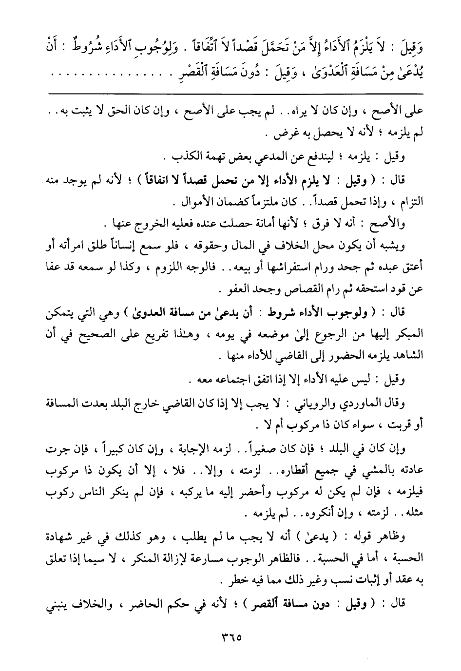 وَقِيلَ: لاَ يَلْزَمُ الأّدّاءُ إِلاَّ مَنْ تَحَمَّلَ قَصْدًا لاَ اتِّفَاقًا. وَلِوُجُوبِ الأَدَاءِ شُرُوطٌ: أَنْ يُدْعَى مِنْ مَسَافَةِ الْعَدْوَى، وَقِيلَ: دُونَ مَسَافَةِ الْقَصْرِ