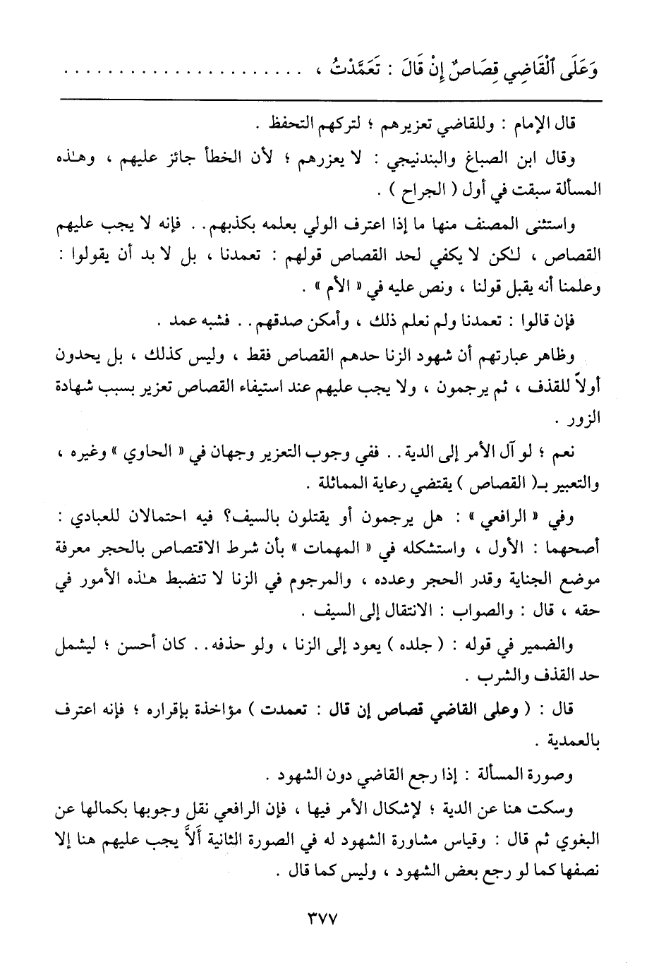 وَعَلَى الْقَاضِي قِصَاَصٌ إِنْ قَالَ: تَعَمَّدْتُ،